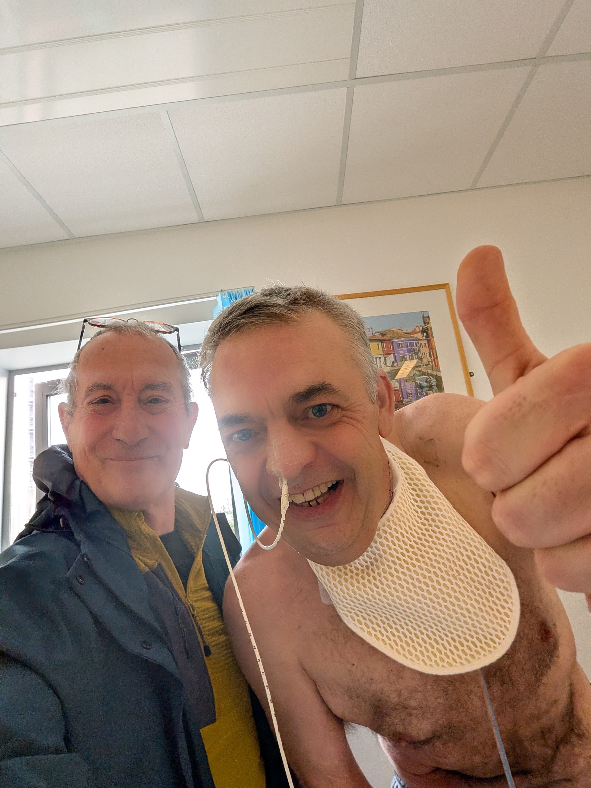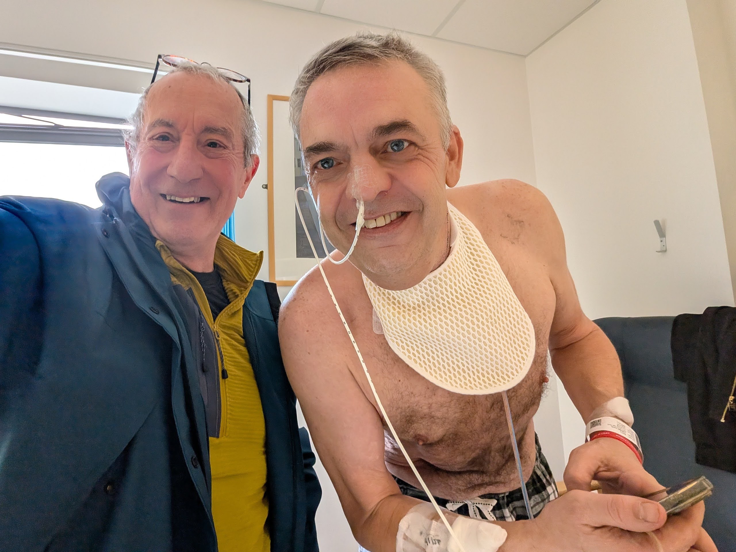 I was amazed to find him sitting in a corridor in Addenbrookes hospital in Cambridge using a tablet and stylus to chat with the person in the next room. He was jolly and pleased to see me.